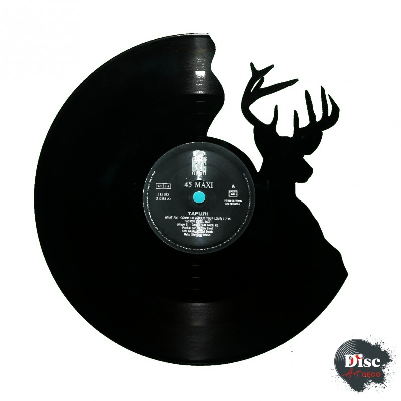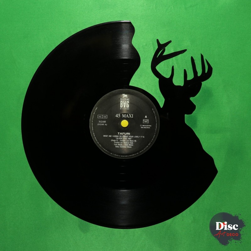 Disque vinyle découpé, représentant un cerf.