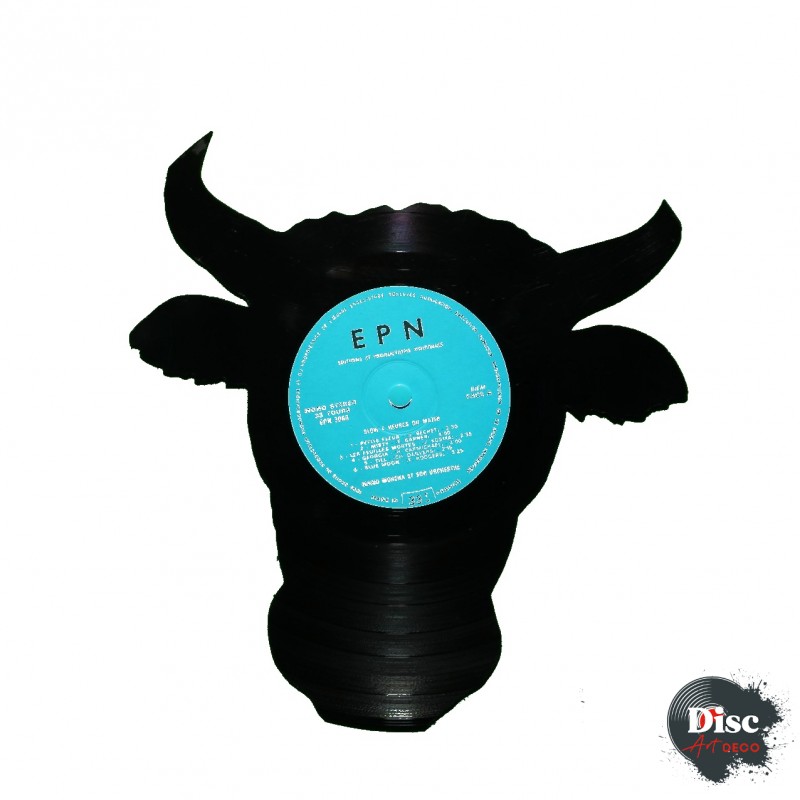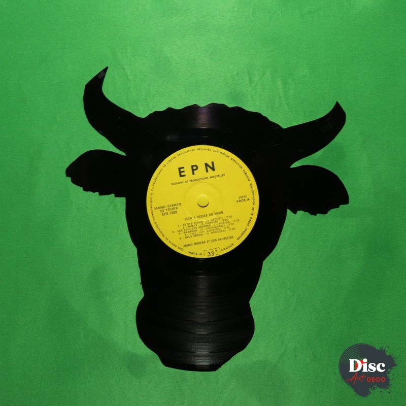 Disque vinyle découpé, représentant une vache.