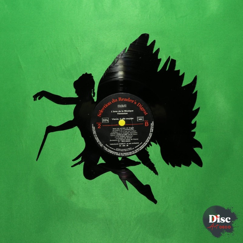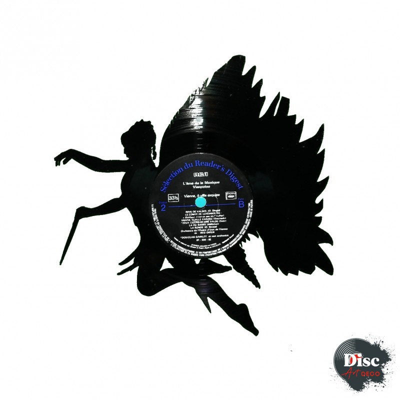 Disque vinyle découpé, représentant une fée.