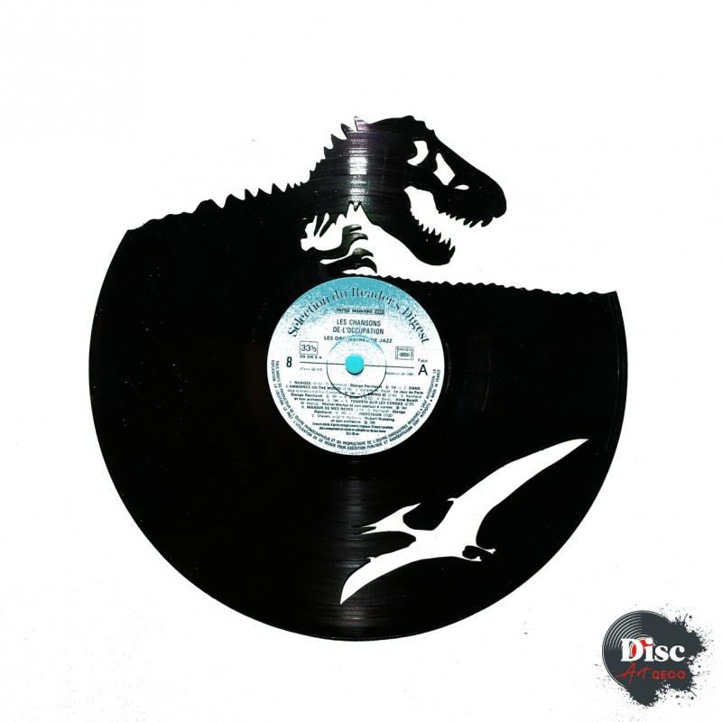 Disque vinyle découpé, représentant Jurassic Park.