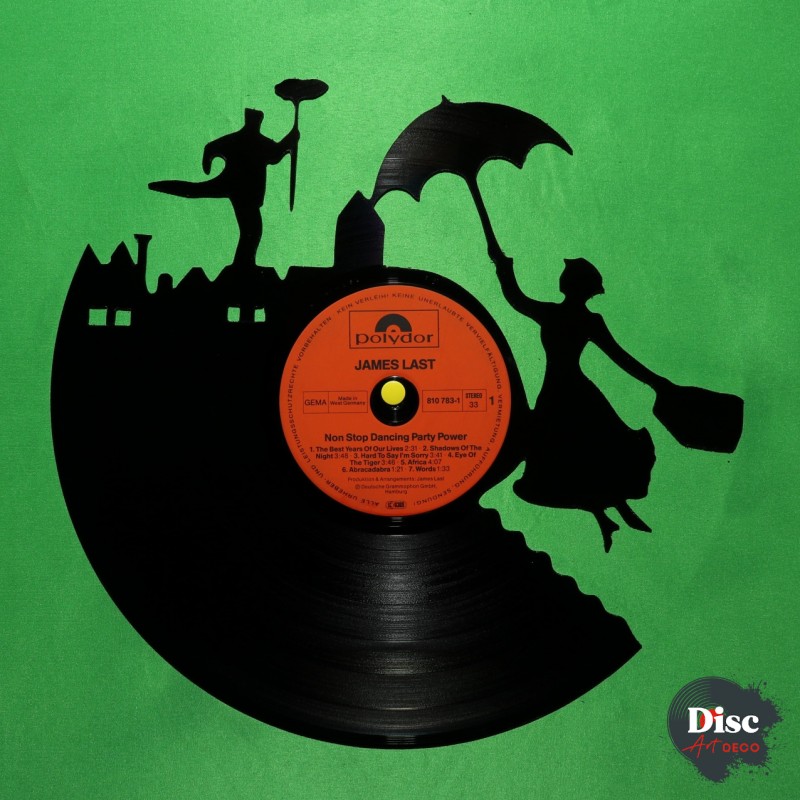 Le vinyle s'accroche aisément en son centre, au mur à l'aide d'une punaise ou d'une vis à placo.