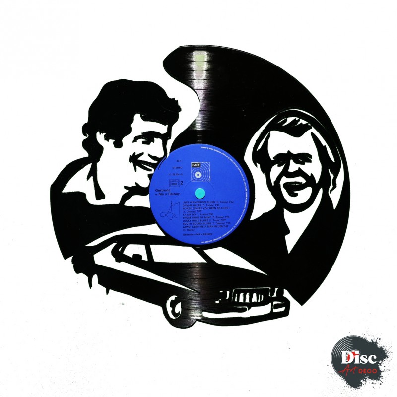 Disque vinyle découpé, représentant Starsky et Hutch.