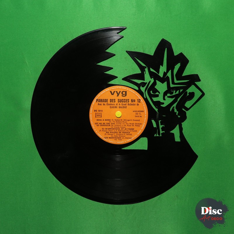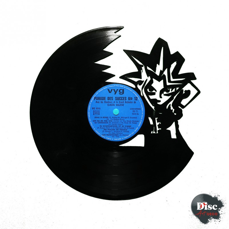 Disque vinyle découpé, représentant Yu Gi Yo.