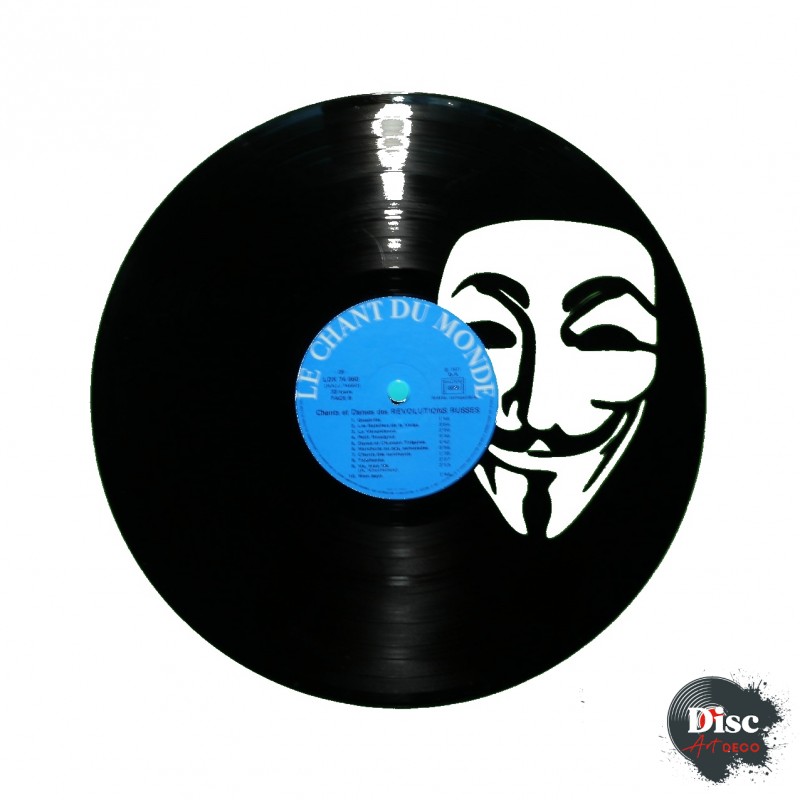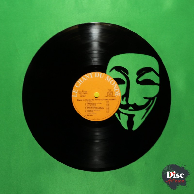 Disque vinyle découpé artisanalement, à la main, à l'aide d'une scie à chantourner.