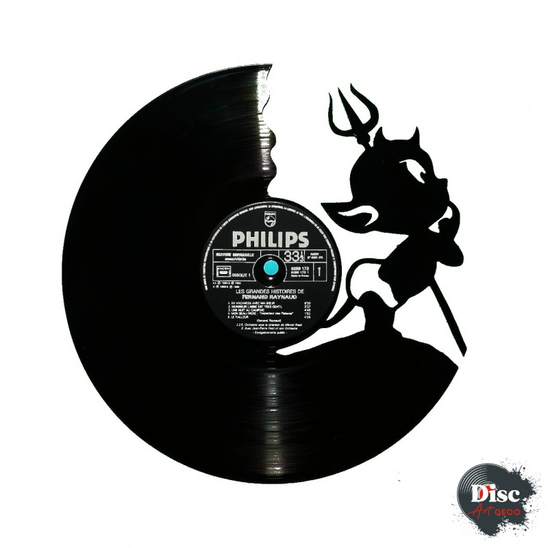 Disque vinyle découpé, représentant un diable.