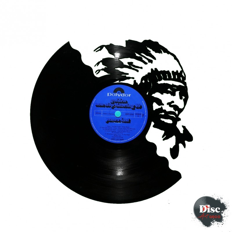Disque vinyle découpé, représentant un indien.