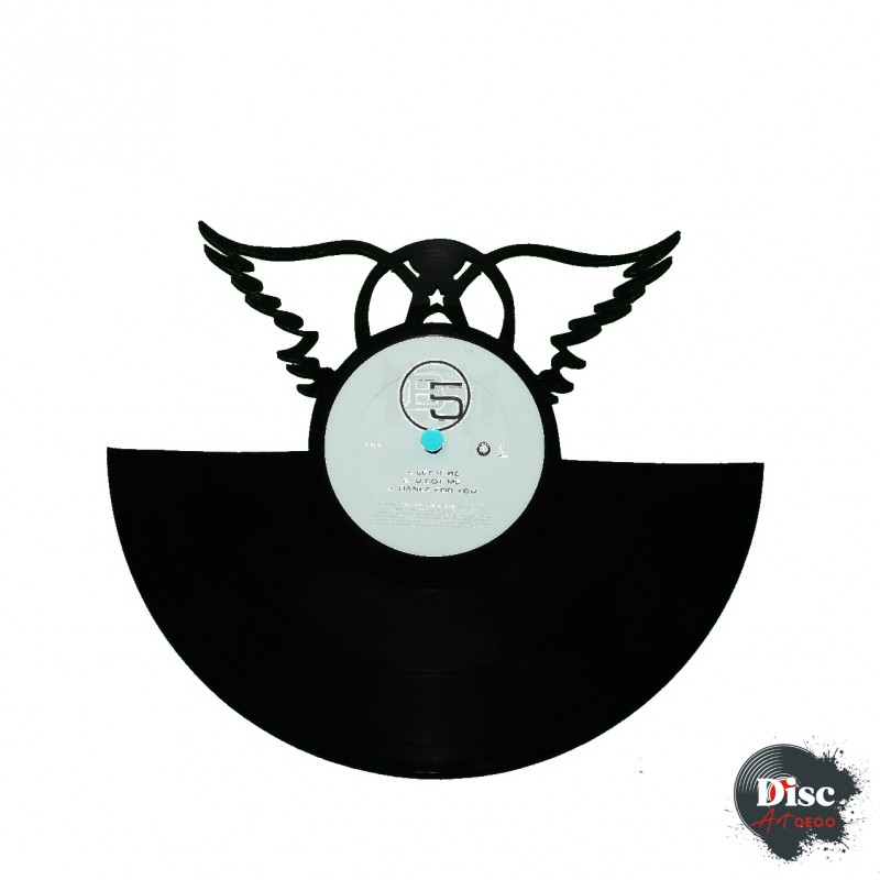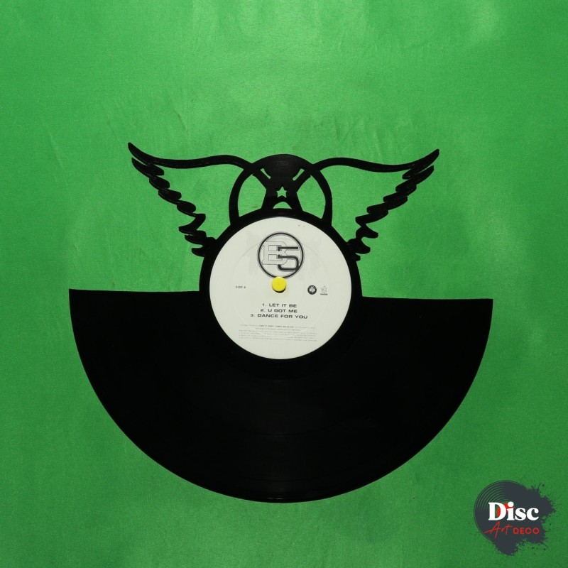 Disque vinyle découpé, représentant le logo d’Aerosmith.