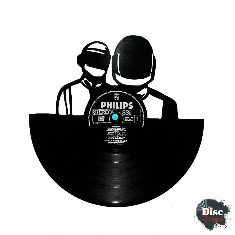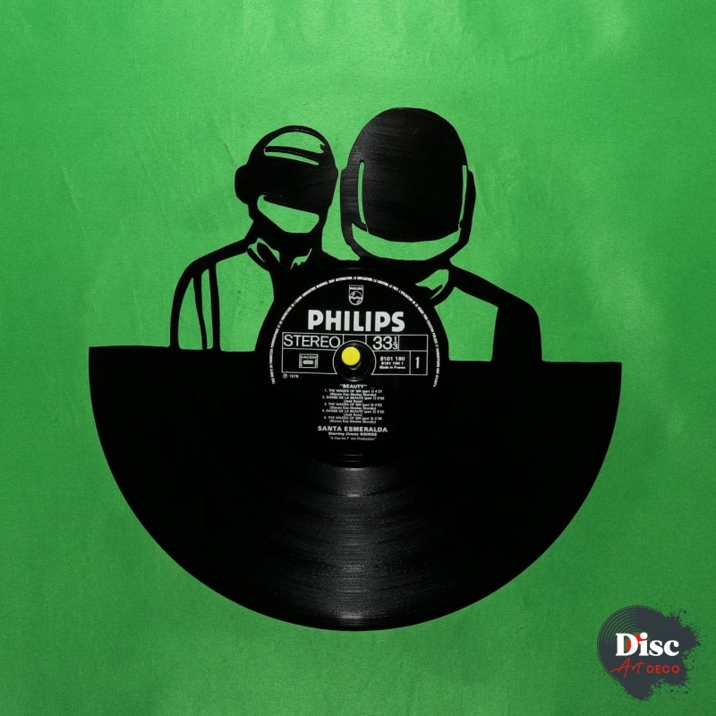 Disque vinyle découpé, représentant daft punk.
