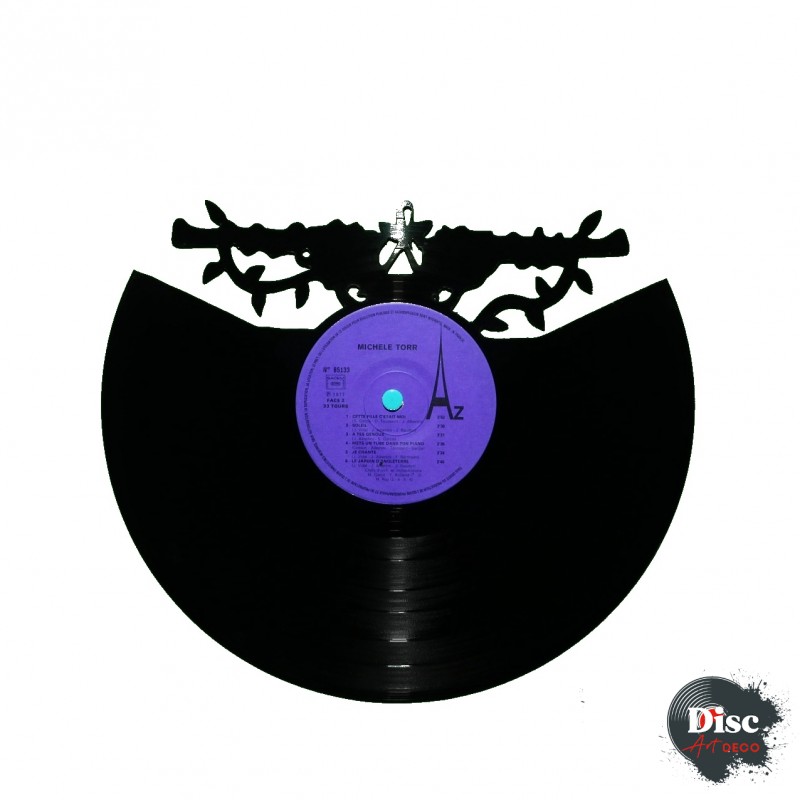 Disque vinyle découpé artisanalement, à la main, à l'aide d'une scie à chantourner.