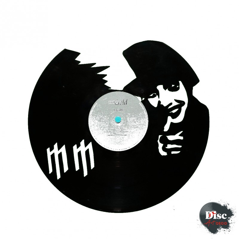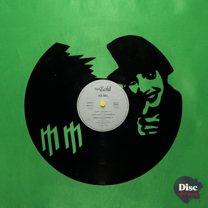Disque vinyle découpé artisanalement, à la main, à l'aide d'une scie à chantourner.