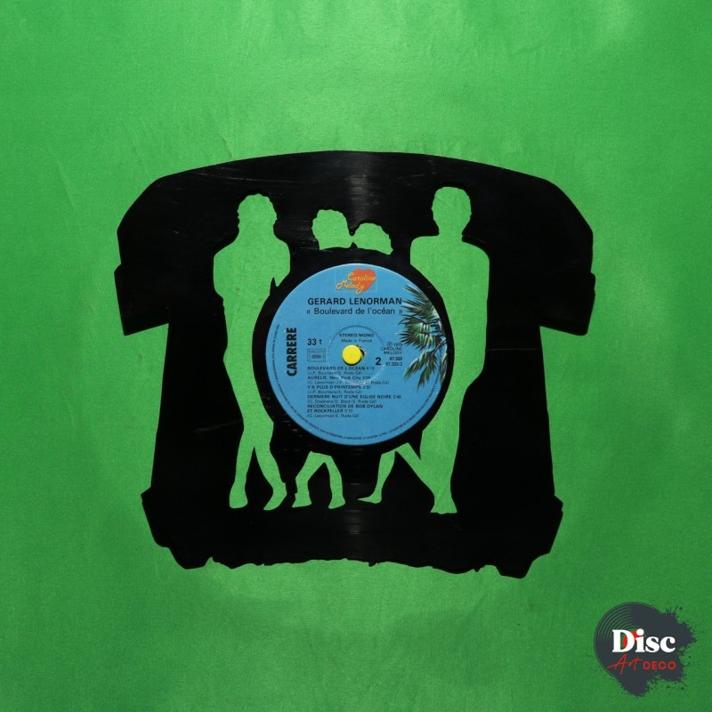 Disque vinyle découpé, représentant le groupe téléphone.