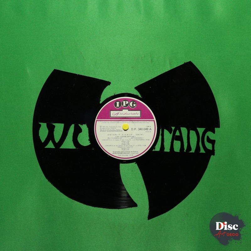 Disque vinyle découpé artisanalement, à la main, à l'aide d'une scie à chantourner.