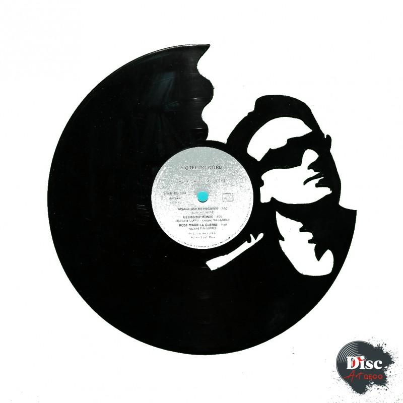 Disque vinyle découpé, représentant Bono.