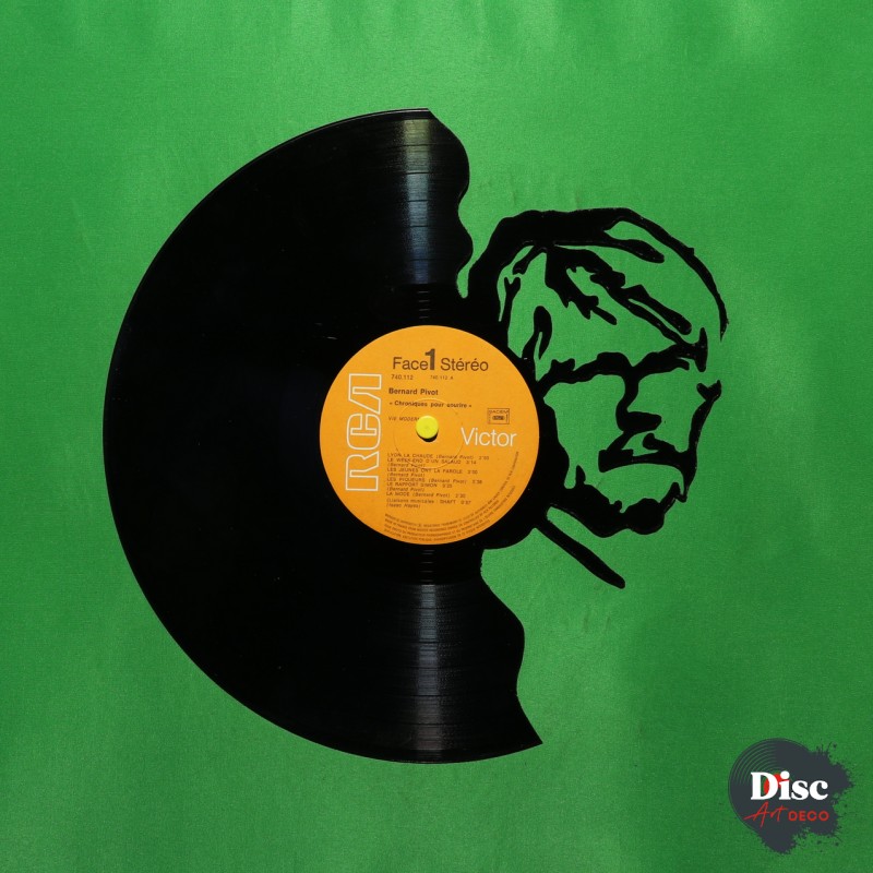 Disque vinyle découpé, représentant Renaud vieux.