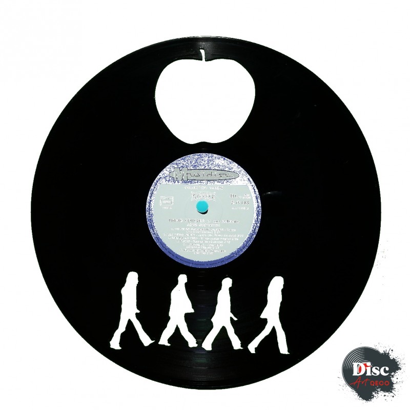 Disque vinyle découpé artisanalement, à la main, à l'aide d'une scie à chantourner.