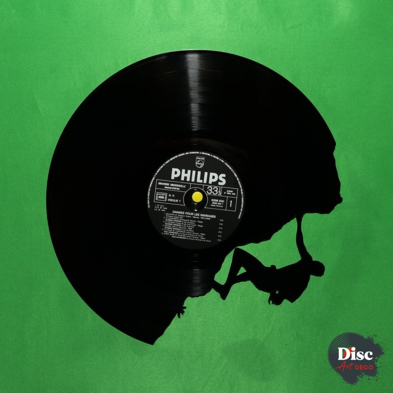 Disque vinyle découpé, représentant l’escalade.