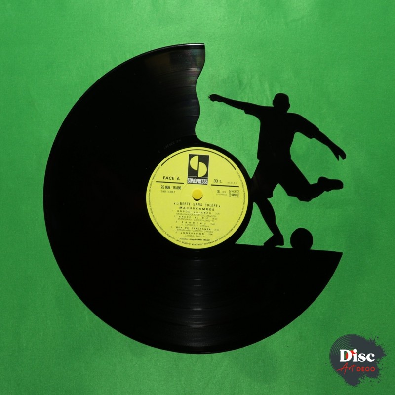 Disque vinyle découpé artisanalement, à la main, à l'aide d'une scie à chantourner.