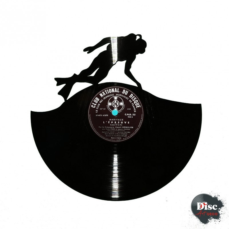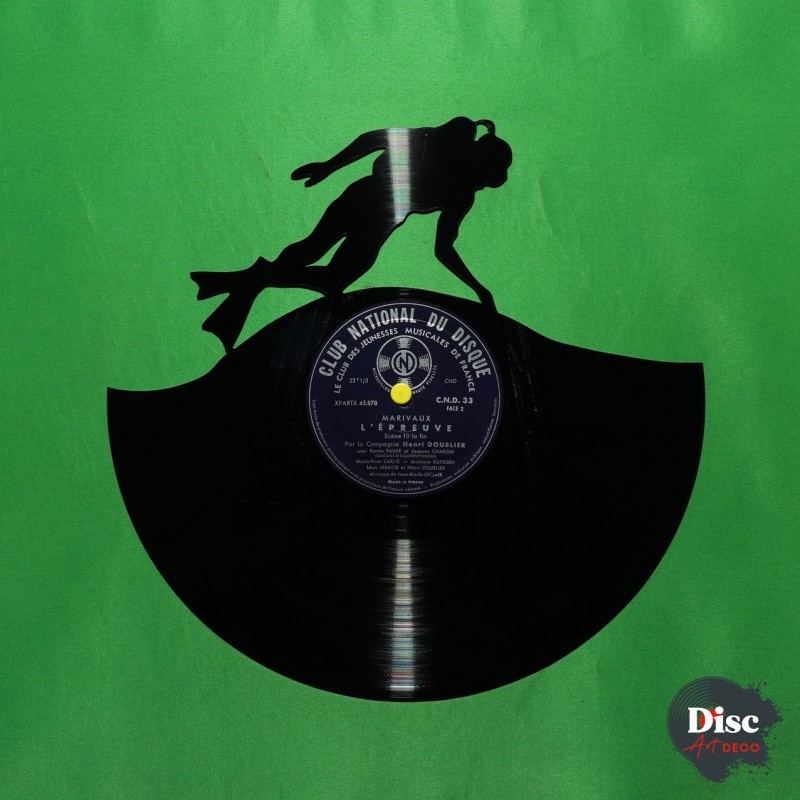 Disque vinyle découpé, représentant un plongeur.