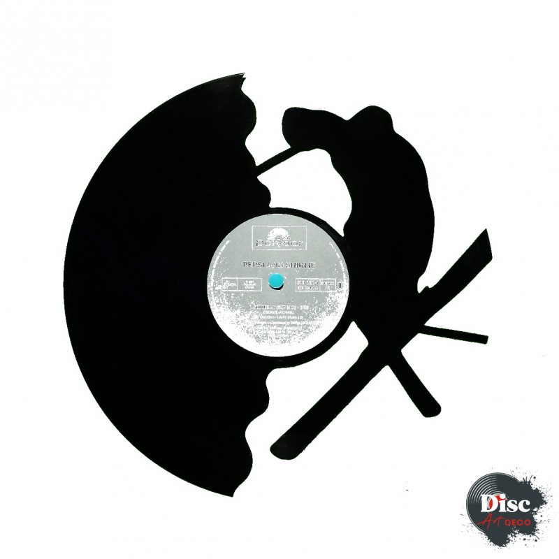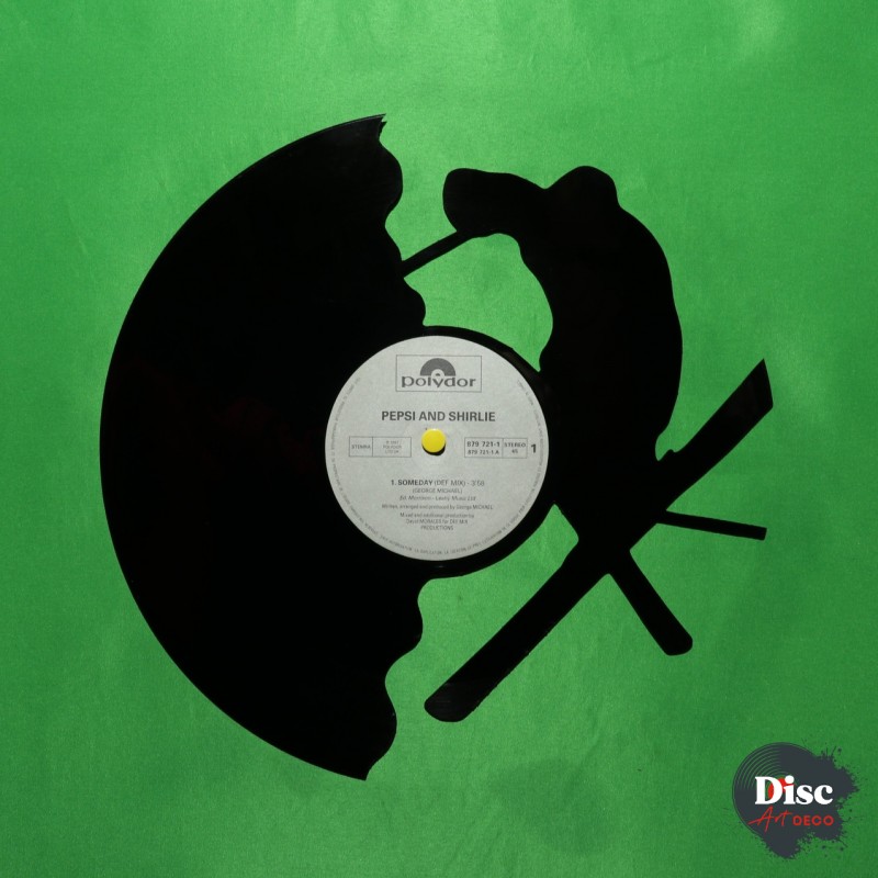 Disque vinyle découpé artisanalement, à la main, à l'aide d'une scie à chantourner.