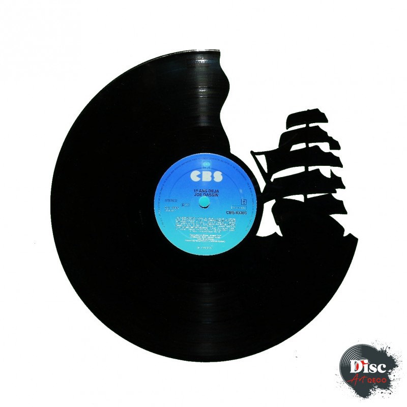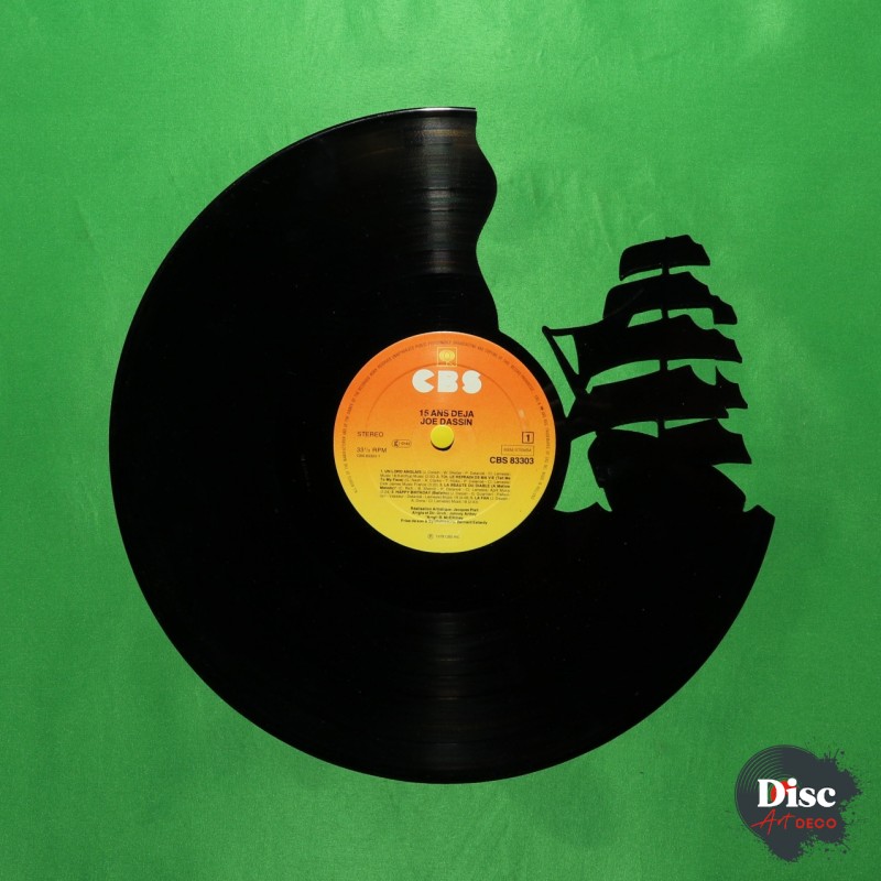 Disque vinyle découpé artisanalement, à la main, à l'aide d'une scie à chantourner.
