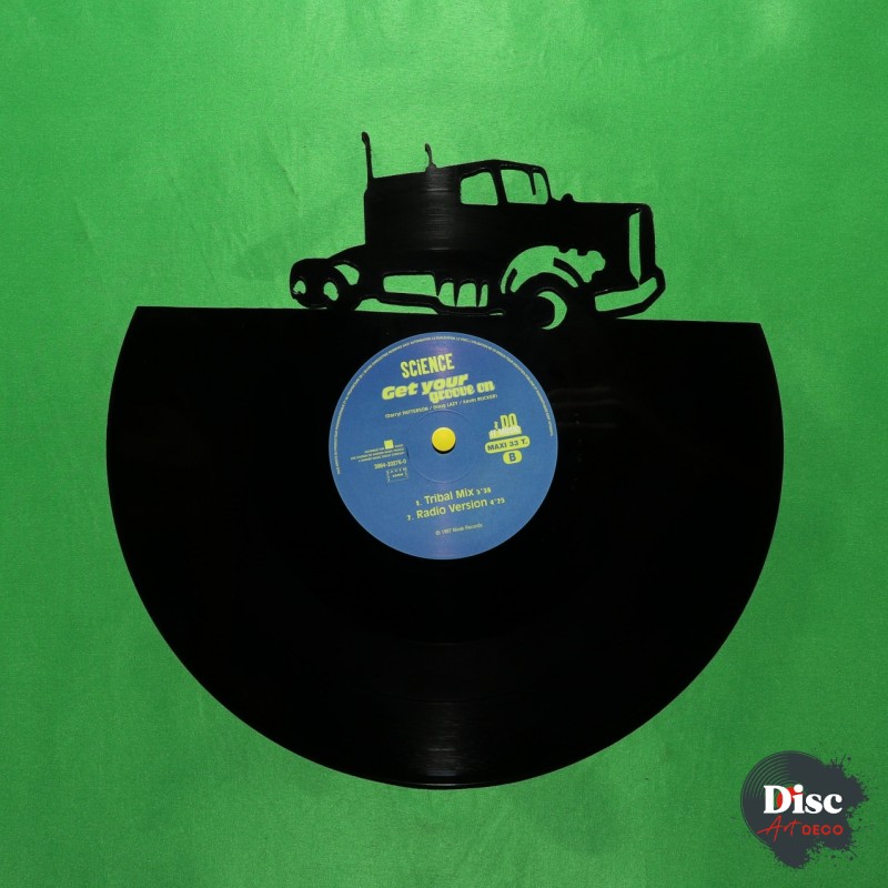 Disque vinyle découpé, représentant un Camion.