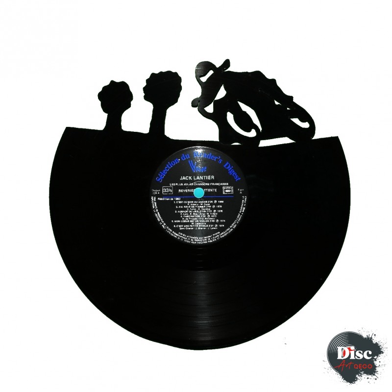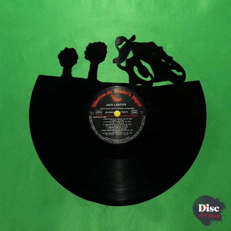 Disque vinyle découpé artisanalement, à la main, à l'aide d'une scie à chantourner.