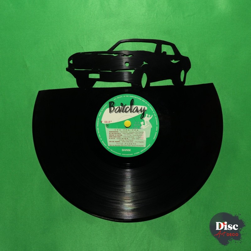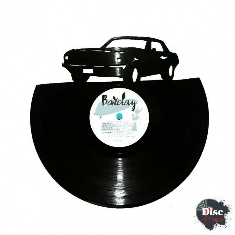 Disque vinyle découpé, représentant une Mustang.